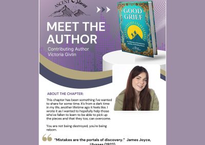 As Victoria allowed herself to grieve, she also remembered a long-held vision: a collaborative book that echoes the heart of Chicken Soup for the Soul—only bolder, more honest, more raw. A safe haven for stories that speak to resilience, loss, and the journey upward.